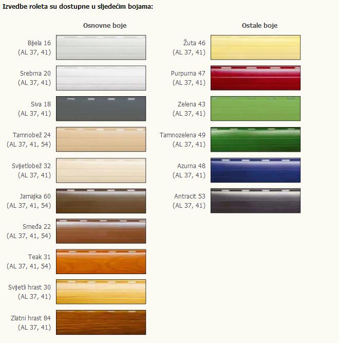 ALU rolete izrađene su od aluminijskih profila punjenih poliuretanskom pjenom. Otporne su na klimatske i atmosferske uvjete, pružaju vrhunsku toplinsku zaštitu, postojanost i nude veći izbor boja i dekora drva, protuprovalnu zaštita te dugi vijek trajanja. Prilagodljive su svakoj fasadi i doprinose uštedi energije. Izrađuju se u više varijanti po širini i debljini lamele: MINI 39 - 43 mm ili MAXI 50 do 77 mm, a dužina ugradnje je do 220 cm.