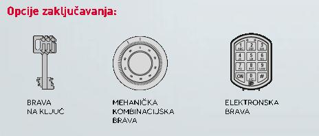 Prilagodljivi svakoj namjeni, velik izbor veličina i dimenzija, polica ili sef u sefu, veliki izbor brava za zaključavanje, pristupačne cijene, diskrecija pri ugradnji.